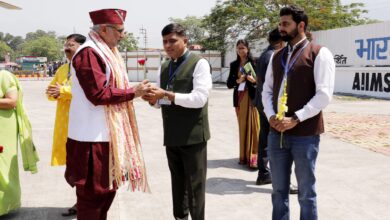 उपराष्ट्रपति श्री सी .पी. राधाकृष्णन जी का राज्य मंत्री सुनील सैनी ने पुष्प भेट कर किया स्वागत