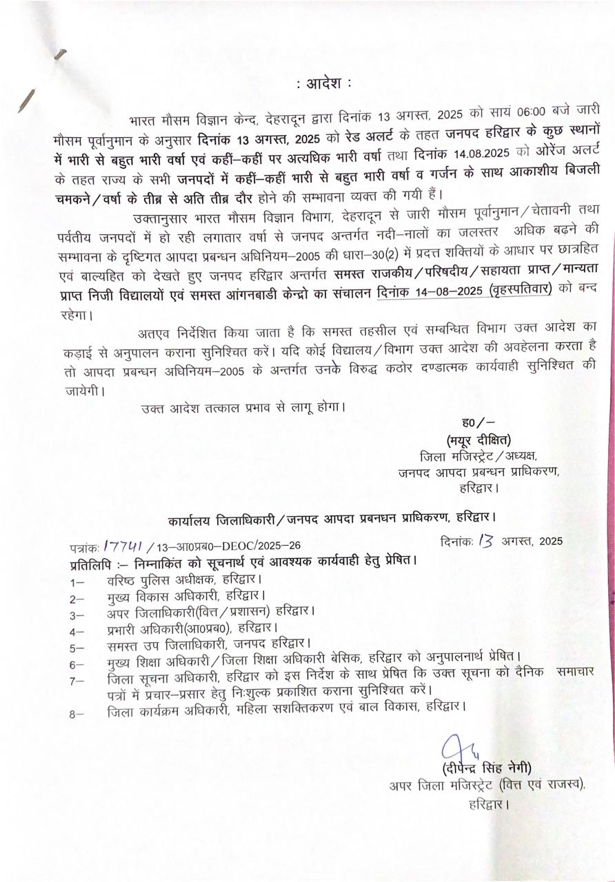 जिलाधिकारी महोदय के अनुसार 14अगस्त को अवकाश रहेगा