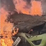 यहां आग का गोला बनी चलती कार, महिला ने कूदकर जान बचाई