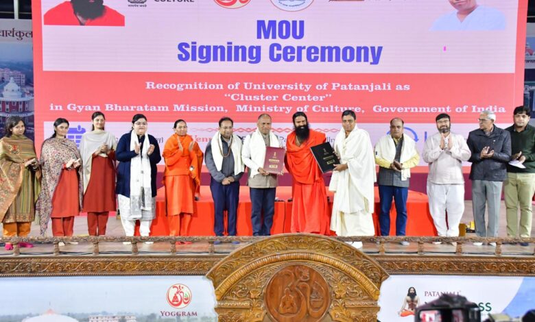 पतंजलि विश्वविद्यालय को ज्ञान भारतम मिशन, संस्कृति मंत्रालय द्वारा बनाया गया क्लस्टर सेंटर