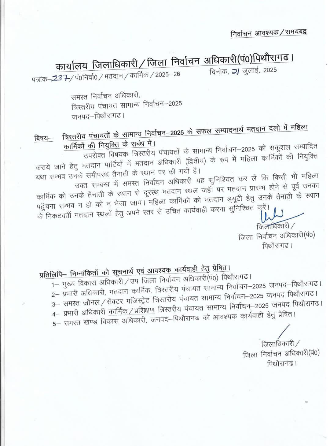 महिला कार्मिकों को तैनाती स्थल के आसपास मिलेगी ड्यूटी